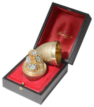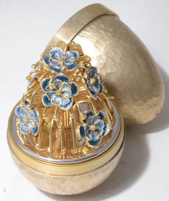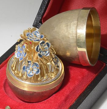 A silver-gilt "Blue enamelled flower Surprise Egg", hallmarked London 1979
