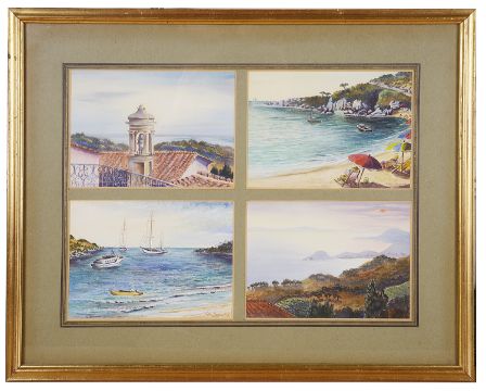 a set of four coastal watercolours