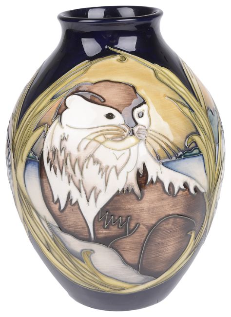 A contemporary Limited Edition Moorcroft vase "Otters at Play" designed by Kerry Goodwin, circa 2011