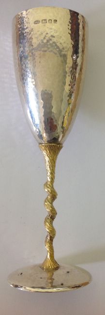 A set of six parcel-gilt silver champagne flutes, hallmarked London 1973
