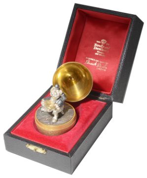 of ovoid form with textured body, opening to reveal Little Jack Horner seated eating a pie, on an incised ground, No. 33 of 200, in original fitted case.