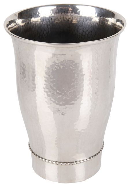 of tapered planished cylindrical form with rope twist detail, hallmarks to base.