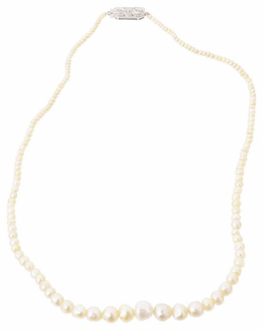 largest pearl approx. 7.10 mm., smallest approx. 2mm. length approx. 40 cm.