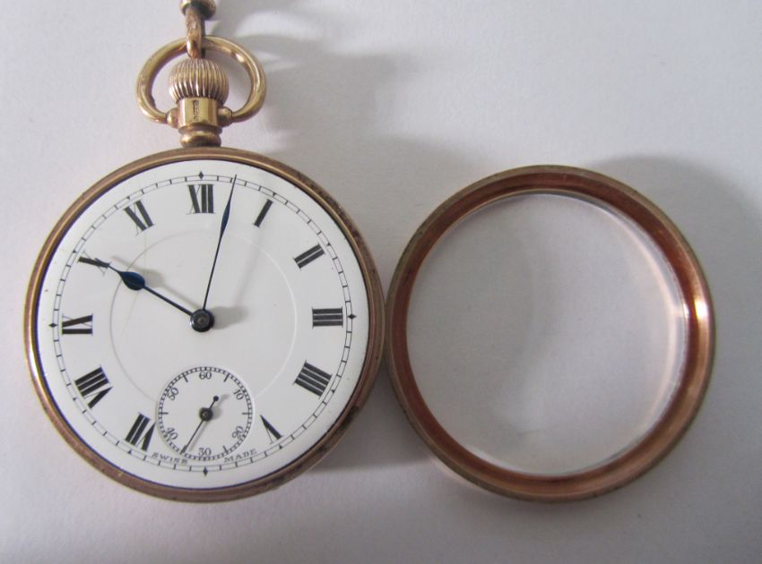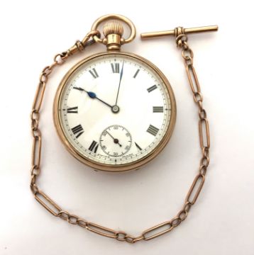 A 9ct rose gold open faced pocket watch and a 9ct rose gold Albert watch chain
