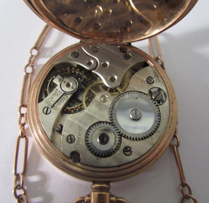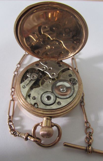 Condition: Fair to good, with wear to case and dial, the dial has cracks running from 8 to 11, mechanism NOT tested, running at time of cataloguing, chain links slightly worn at ends.