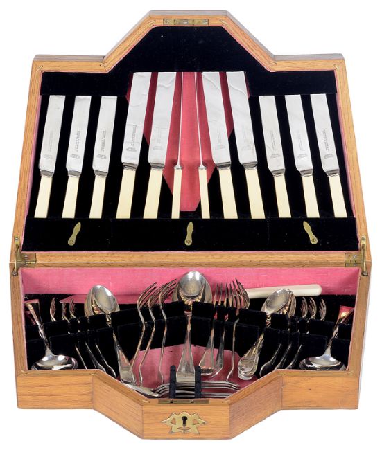 comprising six table forks and knives, six dessert spoons, six soup spoons, six dessert knives and six teaspoons, (qty)