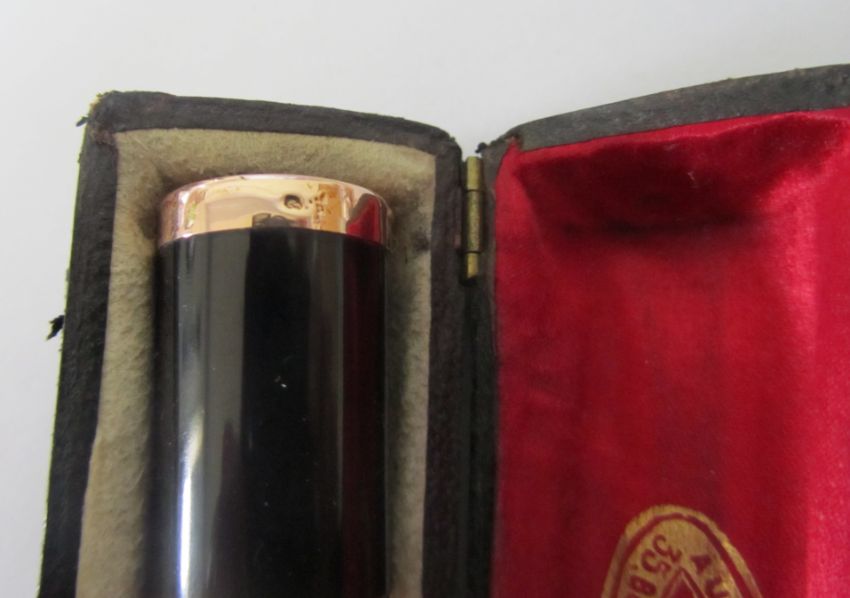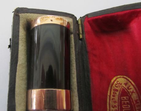 Condition: Fair to good, with little wear to mouthpiece, crack in amber near black bakelite, hallmarks rubbed, slight wear to interior of box.
