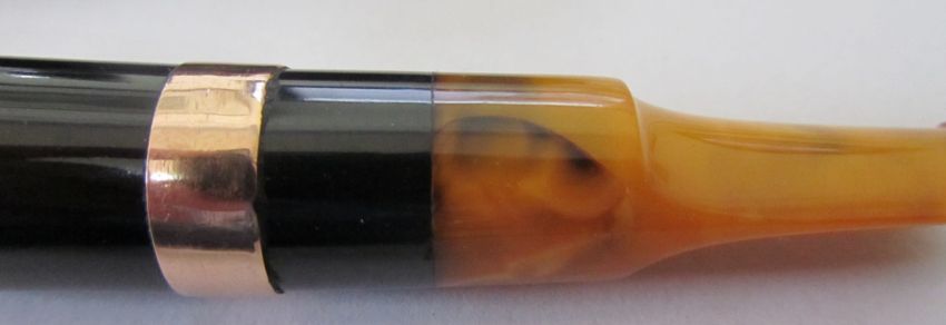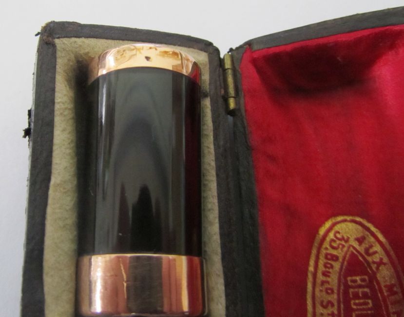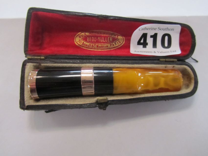 A French 18k gold amber and black Bakelite cheroot holder, with fitted box
