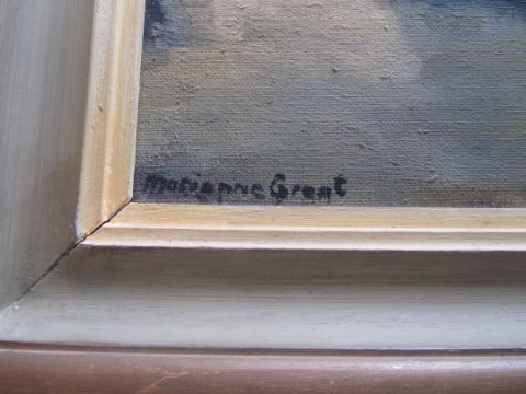 total frame: 34.5 x 34.8cm; canvas: 25.5 x 25.5cm approximately.