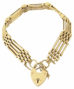 A delicate 18ct gold four bar gate bracelet with heart padlock fastening