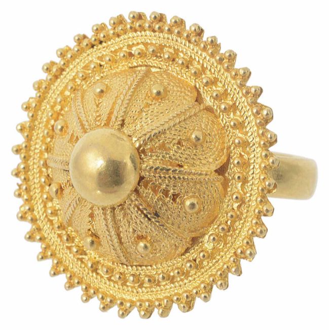 An Ethiopian yellow metal circular shield ring