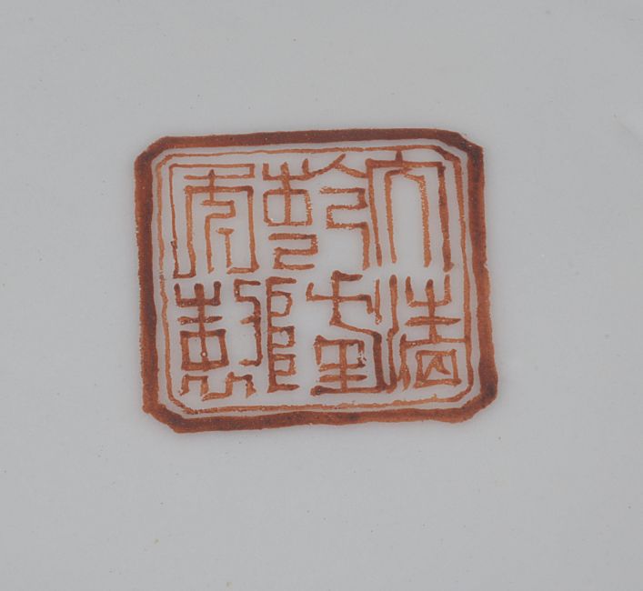 well painted with ducks in flight, amongst reeds and chrysanthemums and perched on mossy rock, with birds perched on blossom branch above, red Qianlong seal mark to base