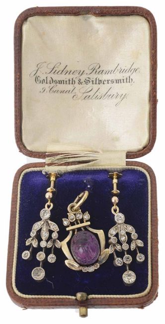 Condition: Pendant overall good slight bruising to reverse, earrings later altered but overall good