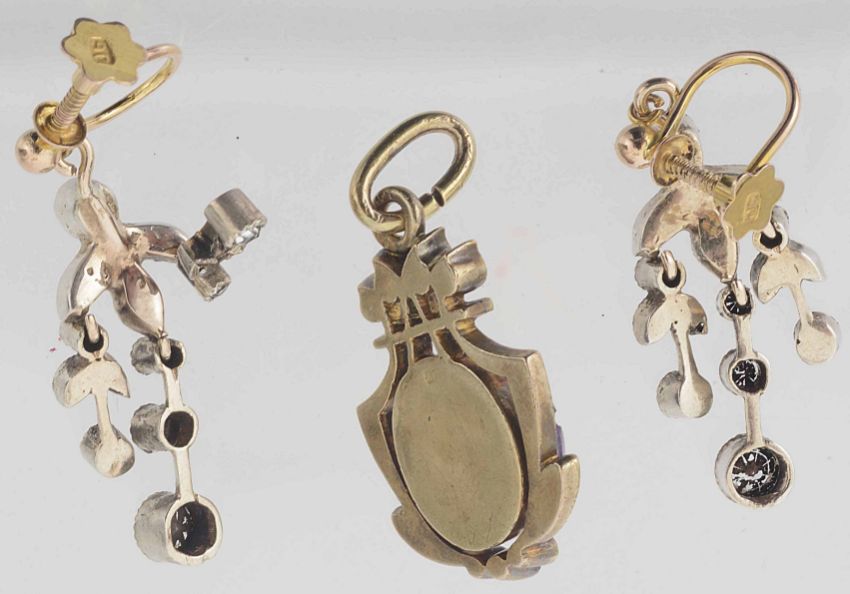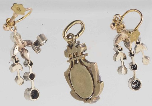 pendant approx. 3.2 cm. including hanging loop, earrings approx. 2.5 cm. drop excluding fittings