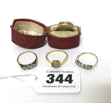 marked for Birmingham 1878, together with a 'jelly' opal cluster ring, tests for gold, and two paste set 9ct gold and silver mounted dress rings, together with associated Victorian red leather ring box (4)