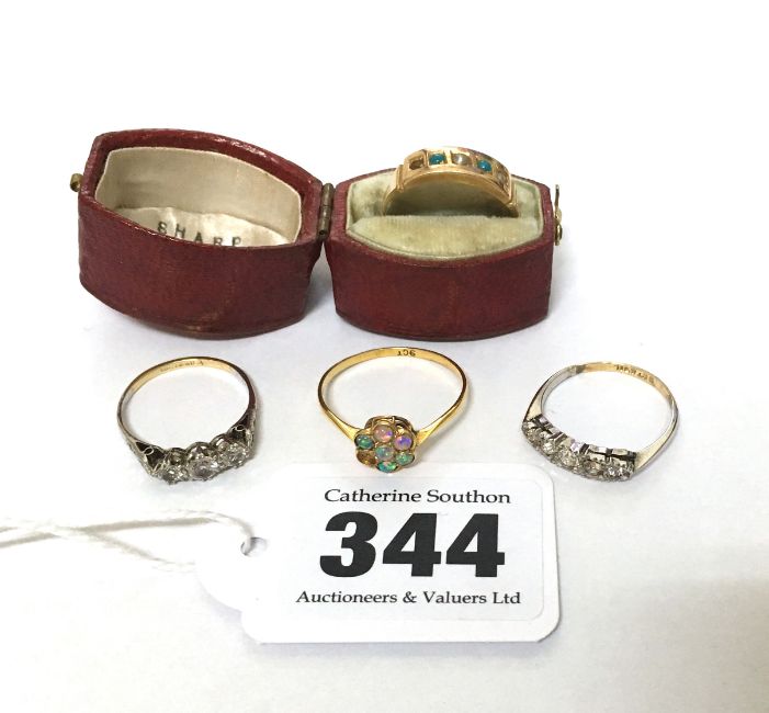 Condition: Gypsy ring one seed pearl absent, opal ring one opal absent , both dress rings overall good
