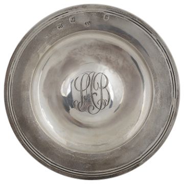of circular form with reeded border, dished base engraved with initials hallmarked William Comyns & Sons Ltd