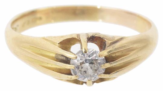 A Victorian style, single stone, gentleman's diamond set gypsy ring