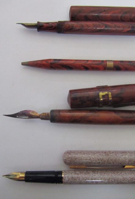 Condition: Fair to good, with wear to each, nibs stained and worn, mechanism NOT tested.