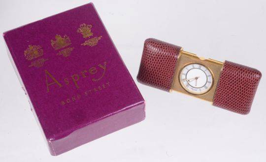 An Asprey Movado style travelling alarm clock,