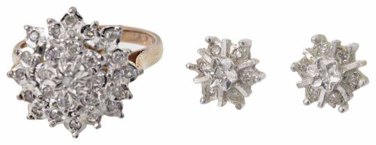 A contemporary diamond set cluster ring and matching earrings