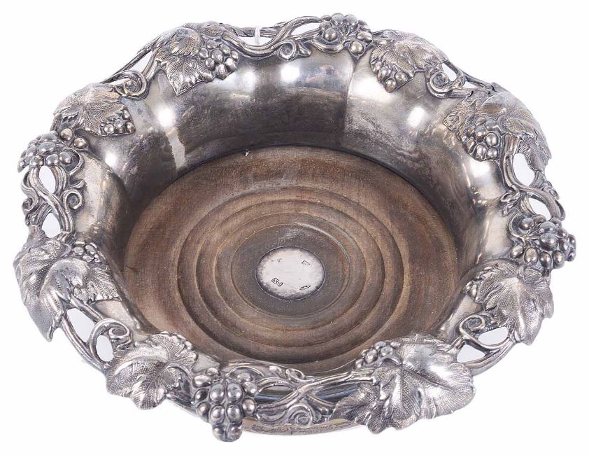 A Victorian silver plated wine bottle coaster,