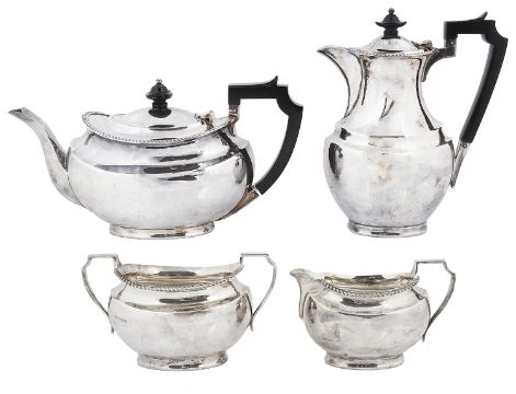 An Edwardian four piece silver tea set, hallmarked Sheffield 1928/1929/1931,