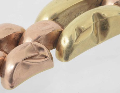 formed of alternate large rose and yellow coloured gold links a.f.
