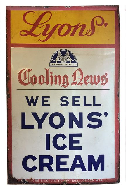A vintage 'Lyons' Ice Cream' enamelled advertising sign