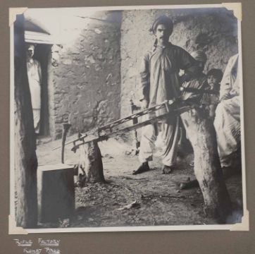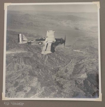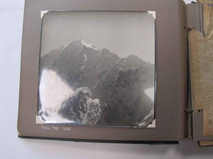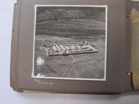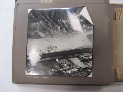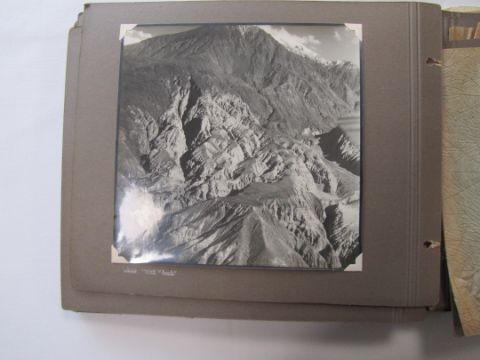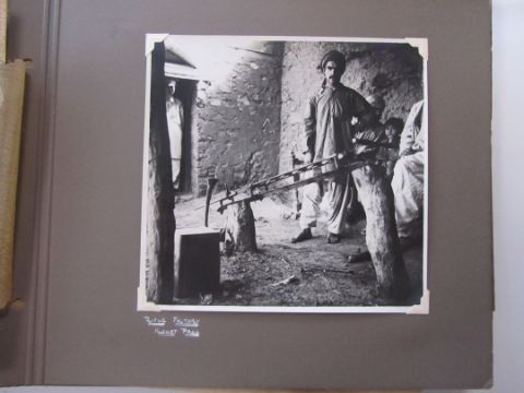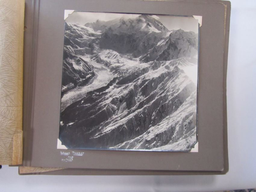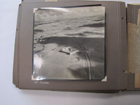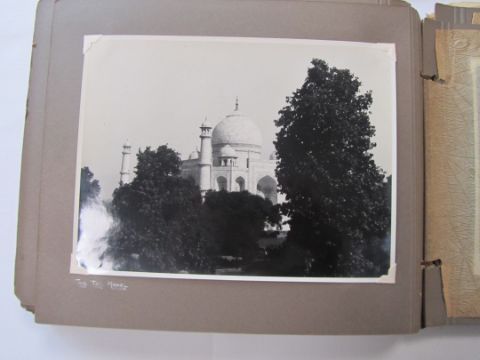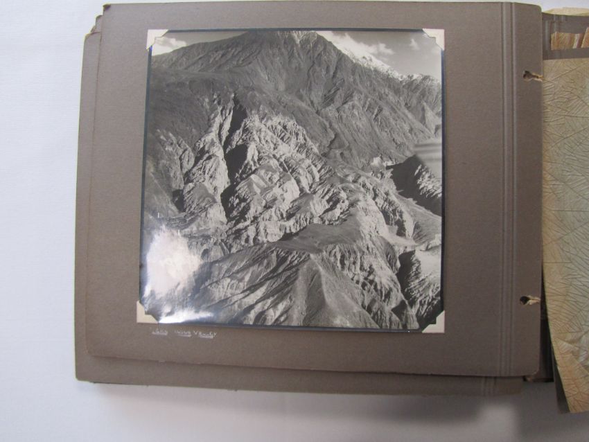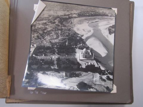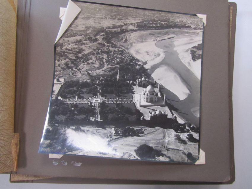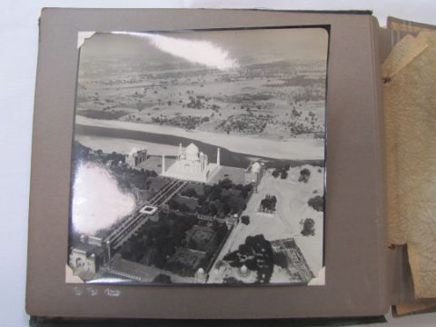 An interesting 1920s-1930s black and white photograph album belonging to RAF pilot A. Hart with aerial images of Camp Kohat, The Tag Mahal, Rifle Factor Kohat, in-flight over Waziristan, Kashmir and others the photographs mainly 6.5 x 8.5in.Condition: The album itself fairly worn and the protective papers worn. The images are generally good and clear, some of the corners are damaged or folded over, album not intact, loose. There are approximately 50 photographs.