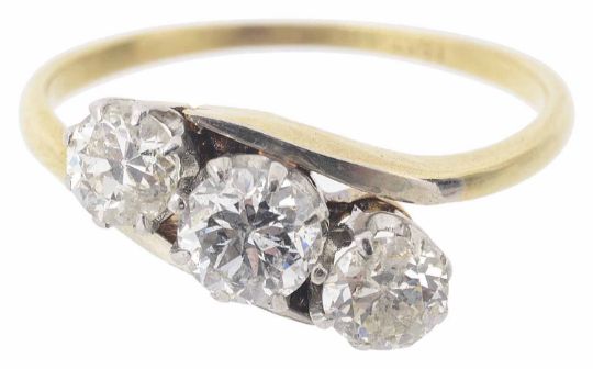 A three stone diamond set twist ring