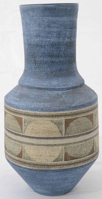 the textured vase decorated with a geometric band of circles, painted marks to base
