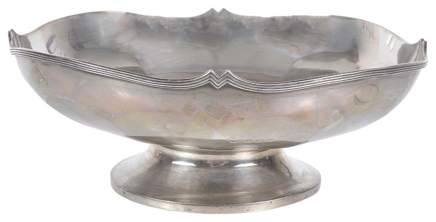 the facet lobed dish, upon circular pedestal base, hallmarks rubbed
