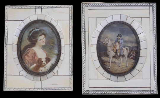Condition: Fair to good, with wear to each ivory frame, 2nd portrait has wear to paintwork at edges.
