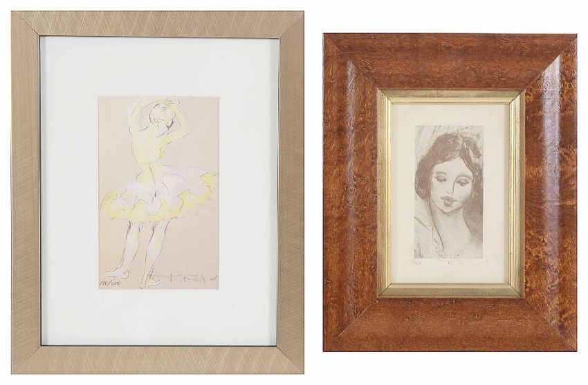 Two small limited edition prints, the former a portrait of a lady signed and numbered 1/150, the second a pastel print of a dancer signed and numbered 130/500 (2)