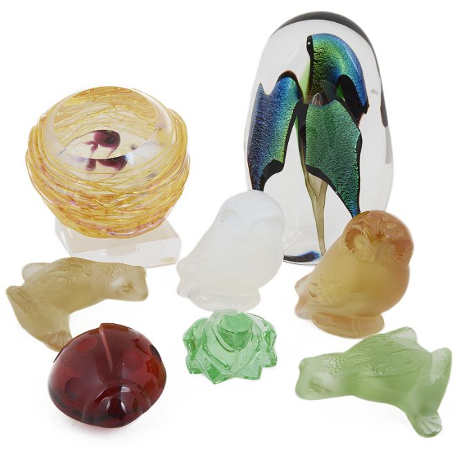 height: owl - 5.5cm, lalique frog - 2.7cm, ladybird - 2.7cm, baccarat - 3.1cm, paperweights - 5.5cm & 11.5cm approximately.