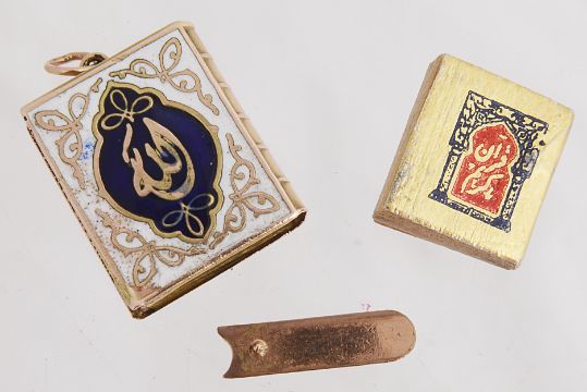 A miniature enamel Quran charm, complete with tiny Quran inside