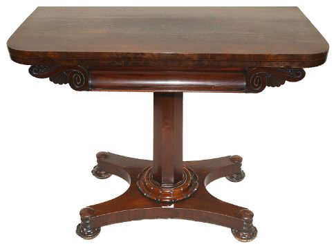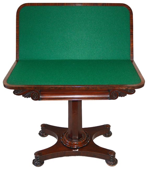 A Victorian mahogany fold over card table