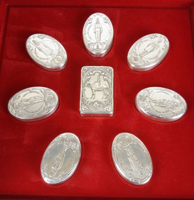 Eight Franklin Mint 'The Guards Regiments' sterling silver boxes, in a fitted case