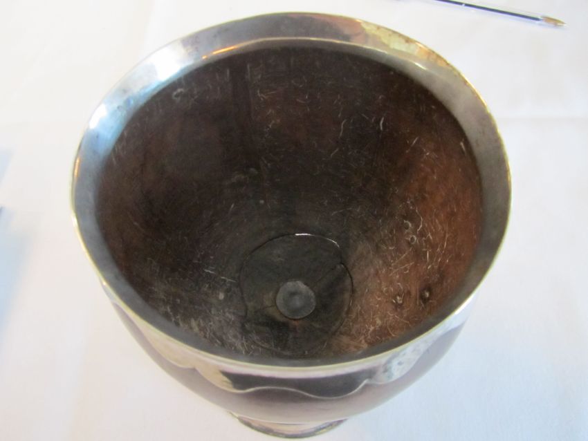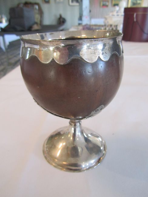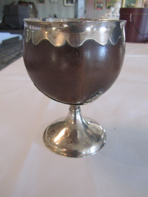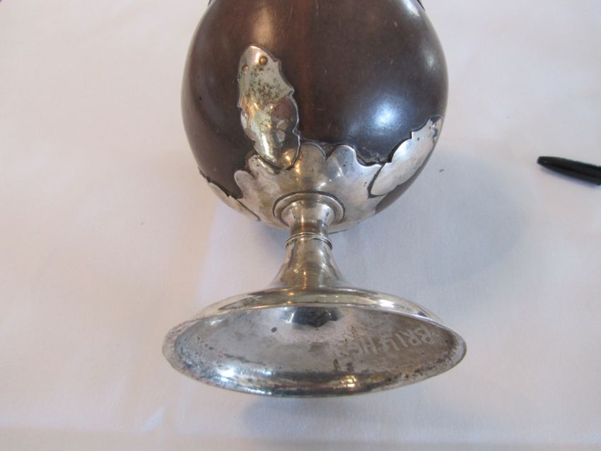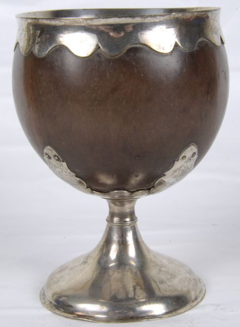 A large George III mounted coconut cup