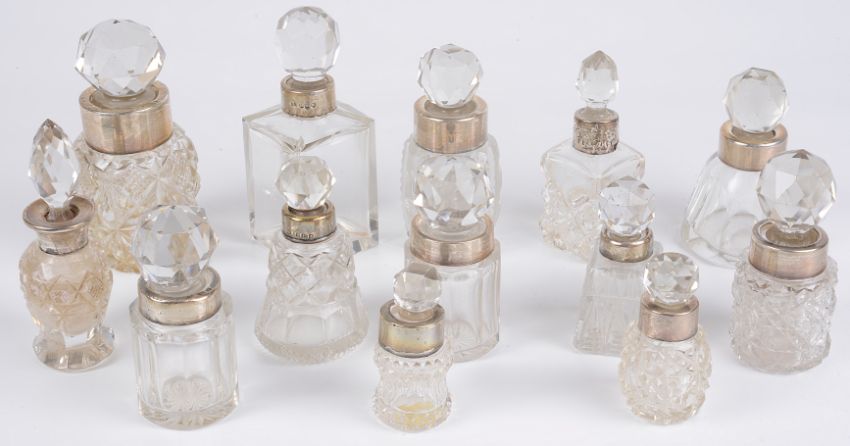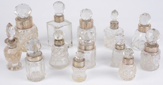 Condition: One without stopper. Most stoppers fit perfectly. One or two possibly replacements. Some silver marks rubbed and a couple of collars worn. Generally in fair condition. Some stoppers with nibbles.