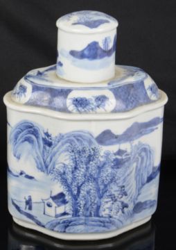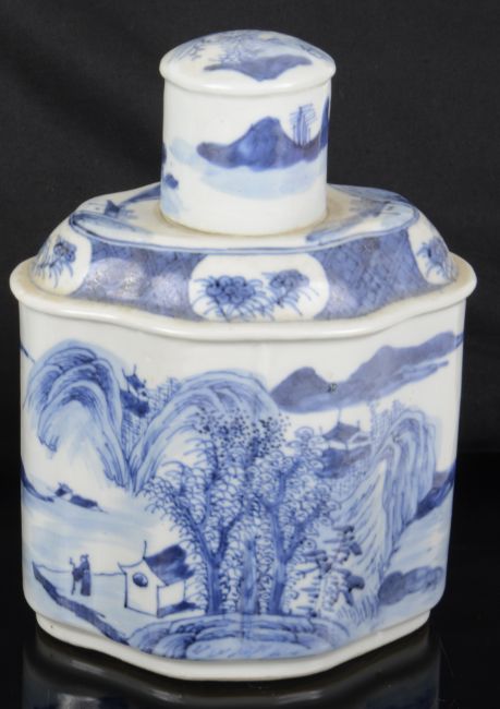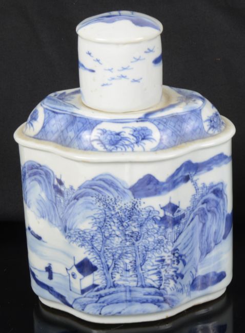 A pair of early 19th century large Chinese export ware blue and white tea poys and covers