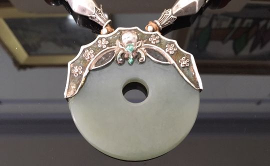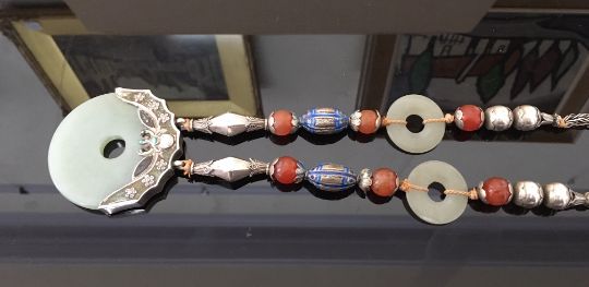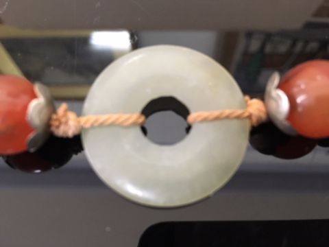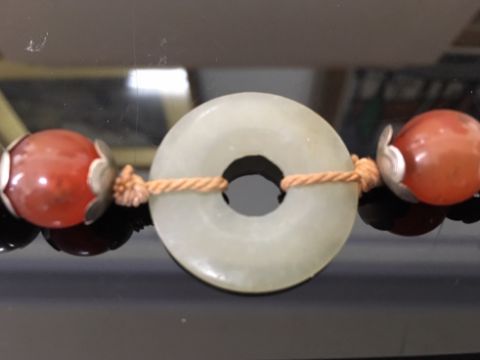 large pendant approx. 6 cm. in diameter, necklace length excluding pendant approx. 89 cm.