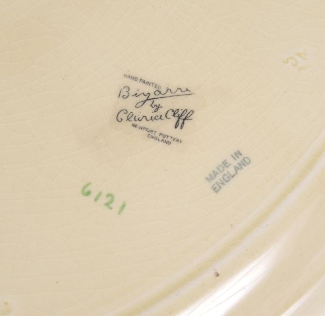 Two 1930's Clarice Cliff 'Bizarre' pattern bowls and two meat platters