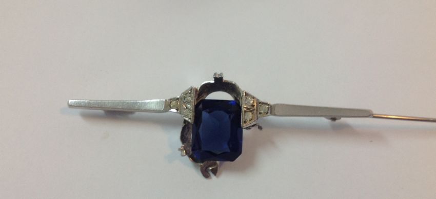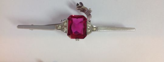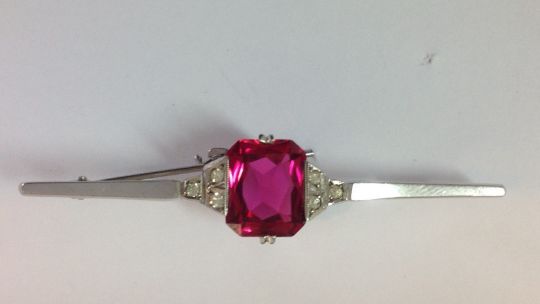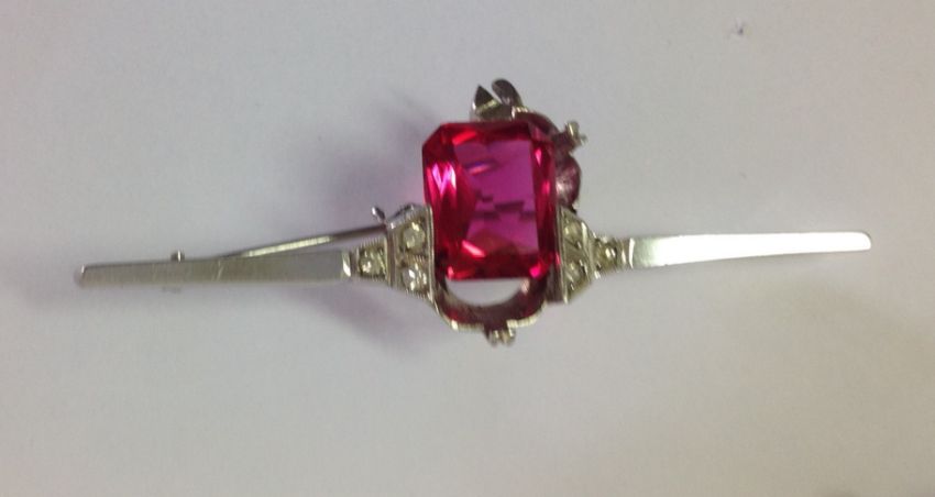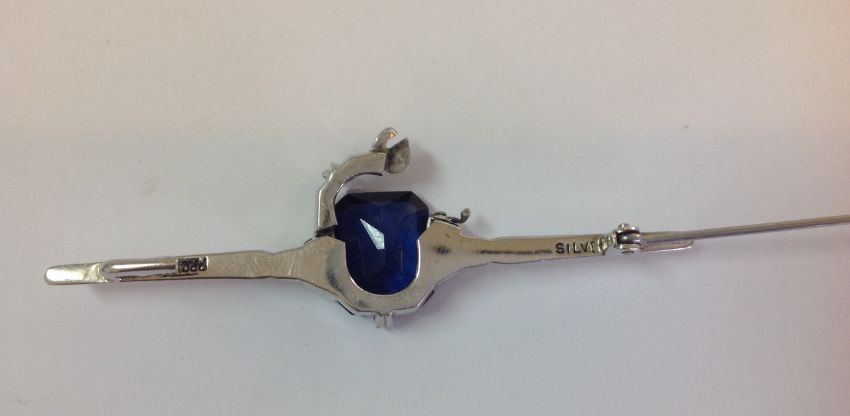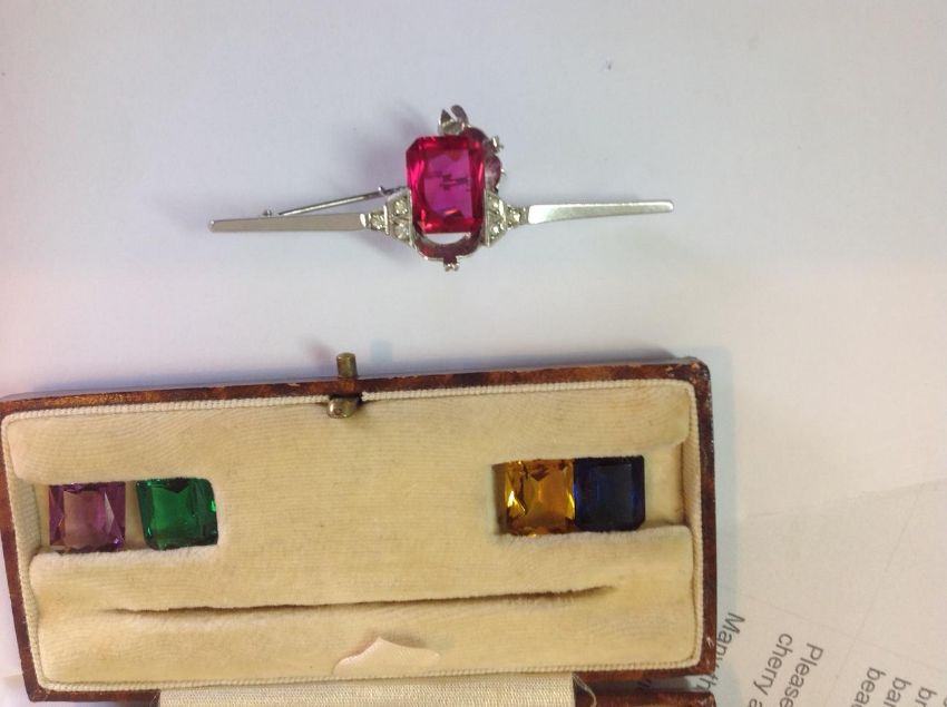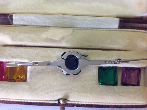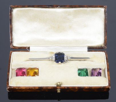 An unusual Art Deco silver and interchangeable coloured paste 'gem' brooch in original fitted case,