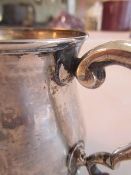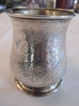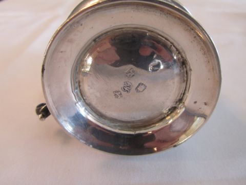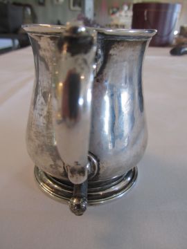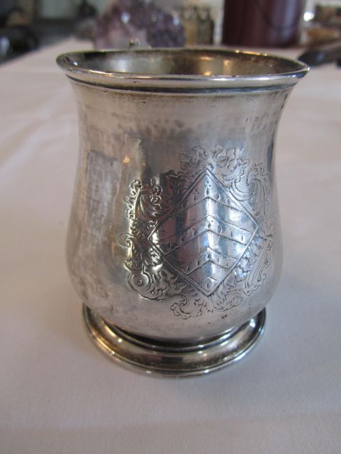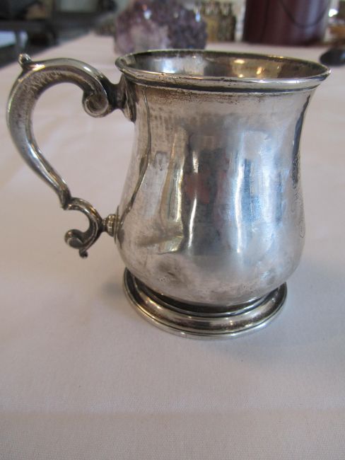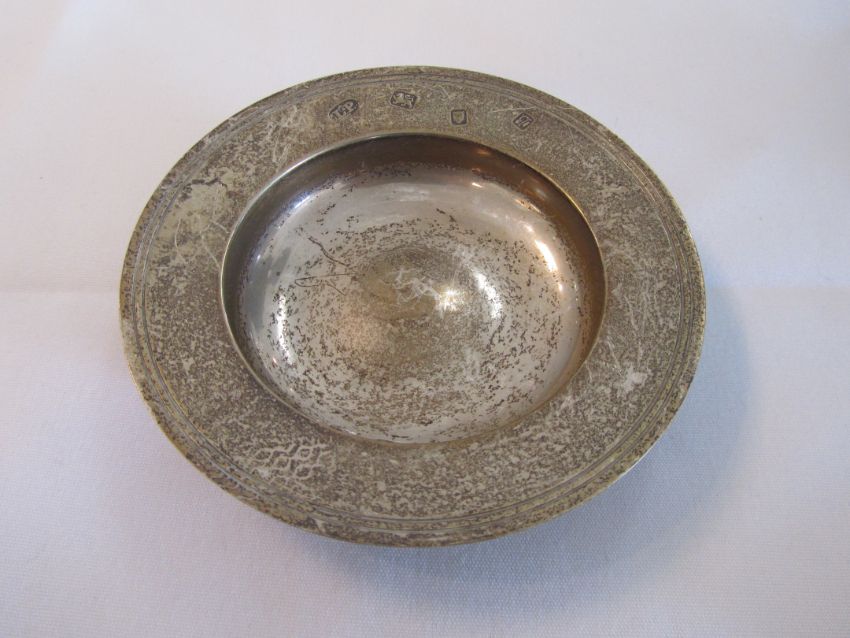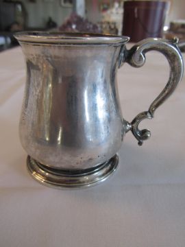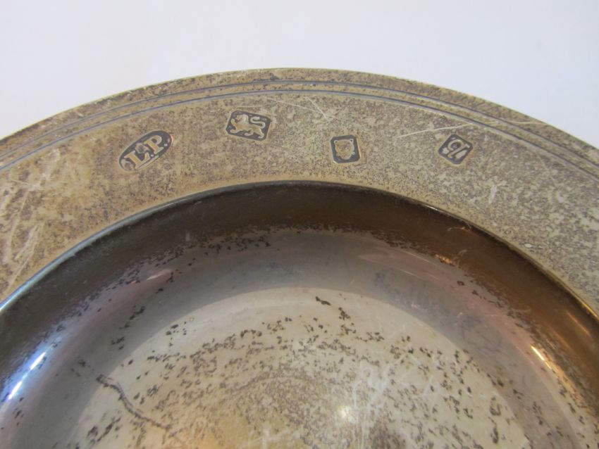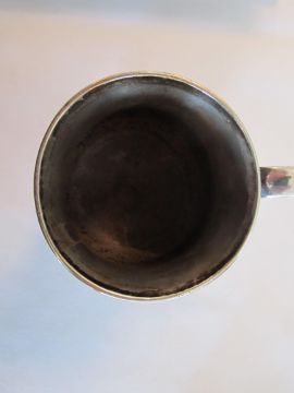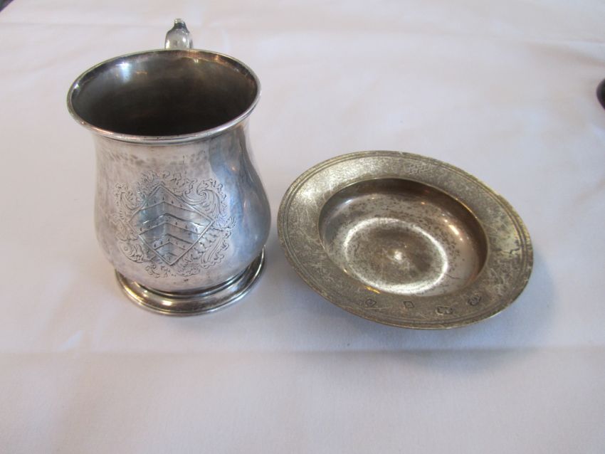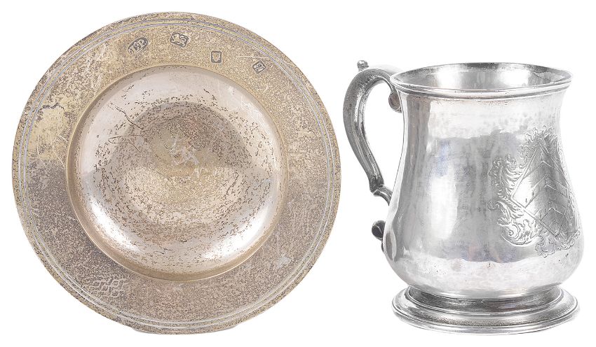 Alms dish: silver weight: 3.4ozt; dish diameter: 12cm approximately. Tankard: silver weight: 6ozt; height: 9cm approximately.