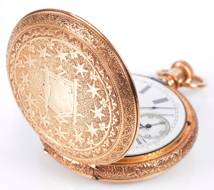 A 14k gold Waltham full hunter pocket watch
