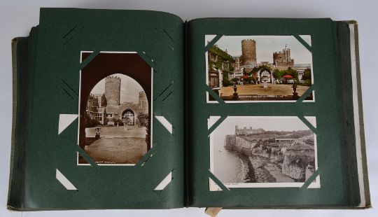 including a collection black and white postcards of St Ives, Newquay, Giants Causeway, Donegal, Harrogate etc. and European destinations including Amsterdam and the Alps, the photograph album also including a collection of colour postcards together with another smaller album containing 1920s/1930s portrait photographs (2)