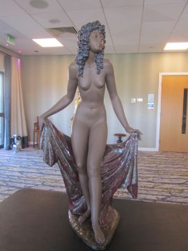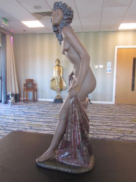 the standing female nude holding a draped cloth, with blue printed marks to base, model number 3558, designed by Salvador Debon, circa 1984.