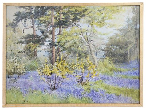 'Bluebells in the woods' noted verso "Cultivated Woods beyond the Dover House Woods Gate" and still life 'flowers in a jug', both signed lower left, framed (2)